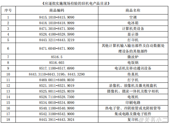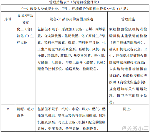 列入《進(jìn)口舊機(jī)電產(chǎn)品檢驗(yàn)監(jiān)管措施清單》中《管理措施表2》 |