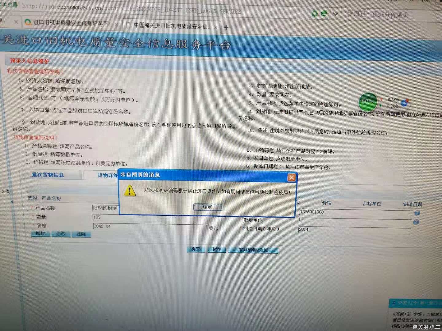 屬國(guó)家禁止進(jìn)口產(chǎn)品,海關(guān)不受理申報(bào)。 |